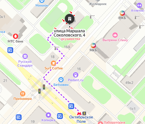 Схема движения от метро до клиники м. Октябрьское Поле