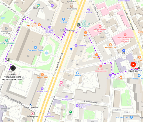Схема движения от метро до клиники м. Полянка